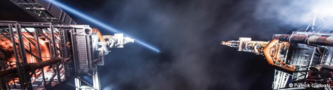 Highline in Belval, the equilibrist Bernhard Witz walks between the two blast furnaces at 80 meters high, with a musical creation from the duo